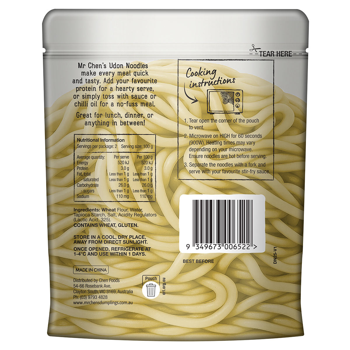 Wheat Flour, Water, Tapioca Starch, Salt, Acidity Regulators (Lactic Acid, 325).