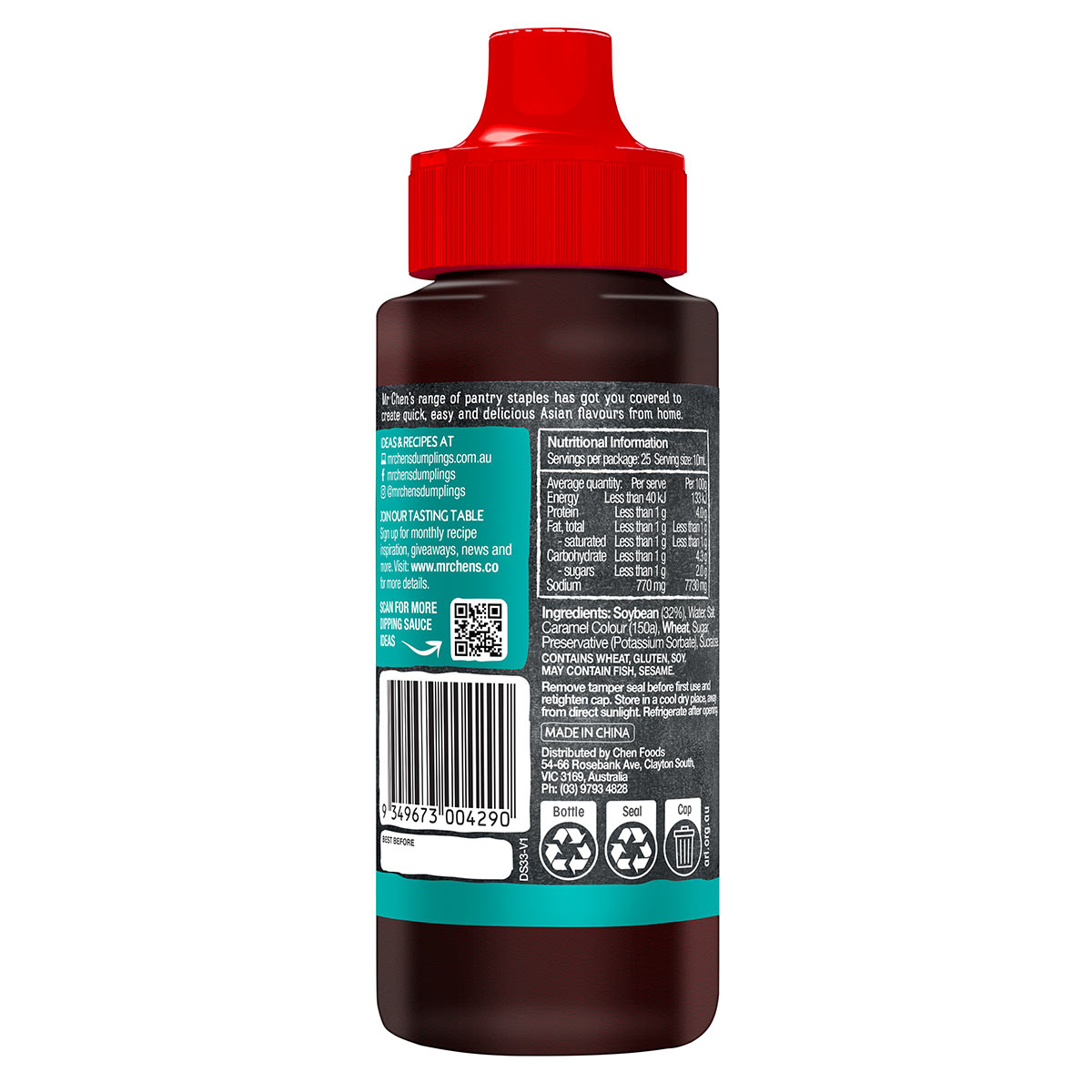 Soybean (32%), Water, Salt, Wheat, Colour (150a), White sugar, Sucralose, Potassium Sorbate (202).